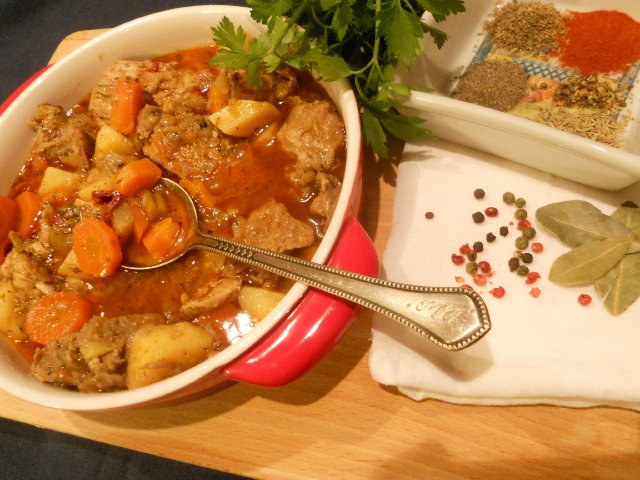Не успях да намеря подходящото говеждо, това е трудна мисия в нашата страна, затова съм я приготвила основно със свинско-плешка и малко имах месо от телешки джолан. Получи се наистина разкошна яхния, заслужава си вниманието.