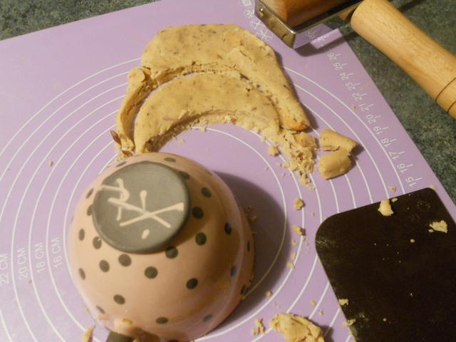 Едната част се разточва върху малко брашно , като отгоре се застила със свежо фолио да не лепи по ролера. Оформя се на правоъгълник, с дебелина около 8 мм до - 1 см. Бисквитката се прави дебеличка. С подходяща чаша се изрязват полумесеци, или точно с половин окръжност на чашата се изрязва полумесец.